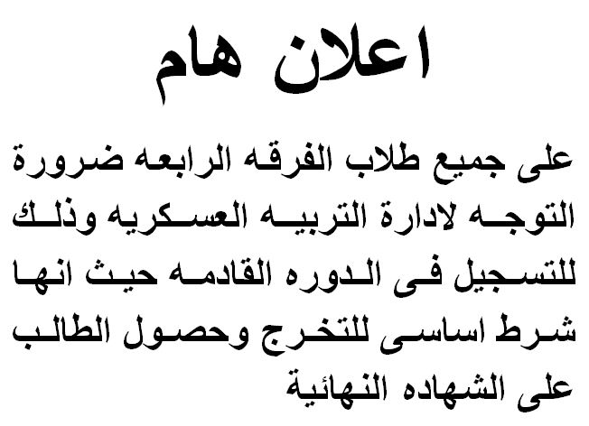 إعلان هام لطلاب الفرقة الرابعه حرصا من إدارة المعهد على مصلحة أبناءنا الطلاب قررت إدارة المعهد كتابة وطباعة مشاريع التخرج لجميع الطلاب مجانا وعلى كل طالب ابتداء من الأسبوع القادم التوجه في موعد المشروعات المحدد بالجدول الدراسي للأستاذ الدكتور المشرف على المشروع