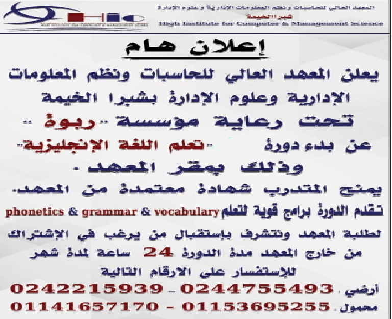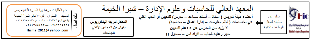 المعهد العالى للحاسبات و نظم المعلومات و علوم الادارة بشبرا الخيمة