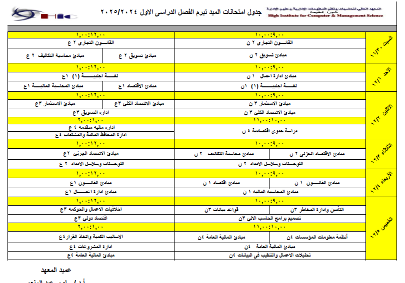 نظام الدراسه في المعهد العالى للحاسبات ونظم المعلومات الاداريه وعلوم الاداره بشبرا الخيمة